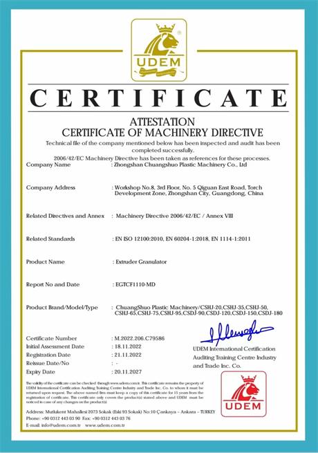 2022年創(chuàng)碩公司通過CE認證Extruder Granulator